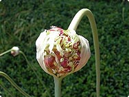 Garlic is a perennial plant that grows from a bulb. The elongated main bulb of the plant is situated at the base of the plant and sits on top of a hard, flat ring the underside of which is covered in roots. Around the main bulb are the closely-packed, curved bulblets or cloves. Each clove is enclosed by a white membranous skin, and together they form the garlic bulb which is about as large as a fist. The 30cm to 80cm high leafless flower stalk rises directly from the bulb. At its base this stalk is enclosed by tubular leafy sheaths. It usually bears five lineal, leek-green coloured leaves and at the tip of the stalk is the umbel, which is enclosed on one side by a very long, pointed white spathe. The whitish flowers which are mostly sterile have more than six angular petals. In between the flowers are tiny, rotund, egg-shaped bulbils which form new plants when they drop to the ground. The plant flowers from July to August.