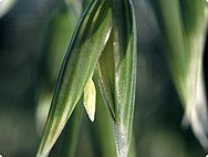 Oats are an annual grass growing either in tufts or in single stalks. The high-growing, hollow stems grow to a height of between 20 and 150 cm and do not branch out. The striate sheaves are open to the ground and the 3-20 mm wide, largely flat blades are rolled at the axil. The panicle stands upright, loose and fans out with fine side branches which barely branch out. The 15-30 cm tall panicles usually bear two- or three-flowered ears. The flowers are androgynous, as are most types of cereal grain. The integuments of the upper or of both flowers are unawned. When the grass is ripe the ears are pendulous. The grains of corn are single-seeded caryopses, the pericarp of which either remains fused to the seed coat or husk or, when ripe, quits the husk and falls naked (as in the Naked Oat). Oats are the airiest, most light-loving of indigenous cereal grains.The grass blooms from July to August.