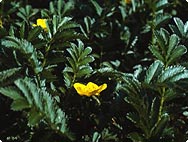 Silverweed is a perennial plant with a short, woody rootstock that sends out runners up to 80 cm long. New roots sprout at nodules on the runners, producing thick carpets. The leaves form a rosette with 13 to 21 interruptedly pinnate, opposing leaflets. These are stalked (petiolate), acutely serrate, and silvery-white and silkily haired on the underside. Individual apical flowers stand on the leafless stalk with five oval, golden-yellow petals and numerous stamens.Silverweed flowers from June to October.