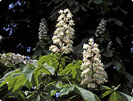 Le marronnier d’Inde est un grand arbre de 30 à 40 mètres de hauteur qui peut atteindre l’âge de 250 ans; il meurt la plupart du temps abattu par le vent. Son tronc brun gris est recouvert d’une écorce d’abord lisse qui devient ensuite écailleuse. Au printemps apparaissent de gros bourgeons poisseux et coniques d’un brun rougeâtre d’où se déroulent des feuilles palmées, à cinq ou sept folioles, qui peuvent mesurer plus de 20 cm de long. Les jeunes feuilles sont velues et de couleur brun rouge. Lorsque ce pelage disparaît, les feuilles deviennent vertes et s’étalent à l’horizontale. Les inflorescences coniques, dressées en panicules, comprennent souvent une bonne centaine de fleurs blanchâtres ou rougeâtres. Les fruits sont des capsules vertes, épineuses, dont la bogue éclate à maturité et qui renferment une ou plusieurs graines brunes et brillantes, avec un hile blanchâtre. La floraison a lieu en mai et juin. La châtaigne comestible (Castanea vesca/sativa) pousse sur un arbre de la famille du hêtre et n’a rien en commun avec le marron d’Inde.