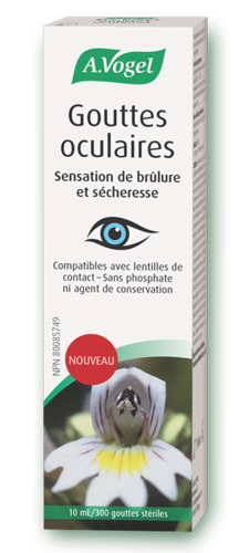 Mon conseil : Les Gouttes oculaires A.Vogel peuvent soulager l'irritation et l'inconfort, et peuvent être utilisées sans danger pendant un épisode de conjonctivite. Elles contiennent de l'euphraise, qui a fait ses preuves dans le traitement de la conjonctivite. L'euphraise peut être particulièrement efficace dans les cas de conjonctivites causées par une infection virale, pour lesquelles les antibiotiques habituelles ne fonctionnent pas.