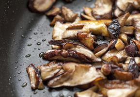 Sautéing or frying mushrooms is another extremely popular way of cooking mushrooms. It is important to spread the mushrooms in a thin layer over a large frying pan or skillet, so that the mushrooms are not clumped together, and that they brown rather than steam.
