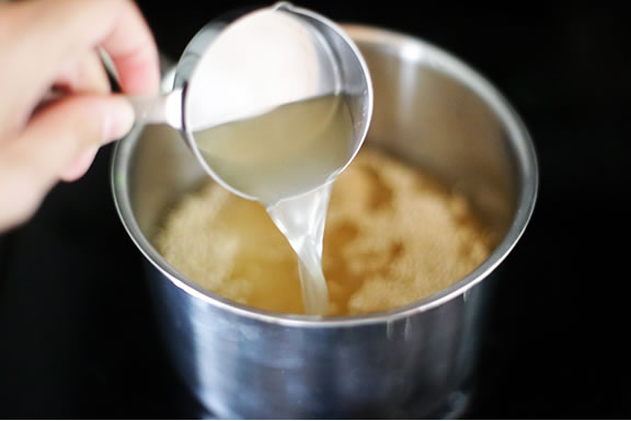 Quinoa can be boiled in much the same way as rice, risotto or couscous. Like rice, 1 cup of dry quinoa to 2 cups of water is usually the best way to ensure that your quinoa doesn’t turn mushy. When cooked, the quinoa will roughly triple in size.
