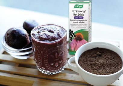 3. Add the almond milk, honey, cocoa and Echinaforce® Hot Drink and mix with a hand blender until smooth. Alternatively, repeat the process using a blending machine.