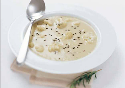 Alongside the delicate aroma of the cauliflower, the slight sweetness of the pear works in harmony with the piquancy of the cheese. This soup also tastes good if broccoli is used instead of cauliflower.
