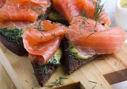 6. Once it's ready remove plastic wrap and discard of dill sprigs. Rince filet under cold water and pat dry with paper towel. Place skin side down on cutting board and slice diagonally in thin slices. Refrigerate remaining in plastic wrap for up to 2 weeks.