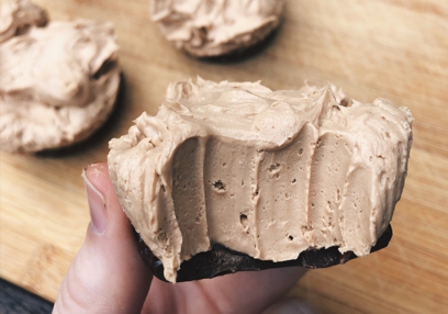 1. Place cream cheese (room temperature), Natur Cocoa and Monk Fruit Sweetener (or honey or maple syrup) in a bowl and blend with hand mixer on low/medium speed until smooth.