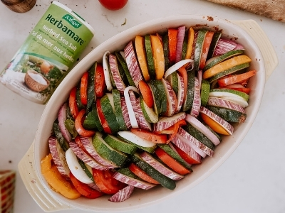 Here is a super simple ratatouille recipe! Quick and easy with end of season vegetables, fresh zucchini, eggplants and tomatoes from the garden… and of course Herbamare sea salt.