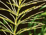 Horsetails are to be found throughout Europe, Asia and North America, from the warm zones right up to the Arctic. Of all the various types of Equisetum, this genus is the most widely met with; it is a ruderal plant, inhabiting sandy soil containing clay. In wet or damp areas, it is possible to find E. arvense growing next to E. palustre (“swamp horsetail”). E. arvense is identified by the first internodule on the plant’s branchlet, which is longer than the sheath on the shoot. It is very important to identify Horsetail correctly, since other species can contain a fungus (Ustilago equiseti) which can cause food poisoning. In North America and in Russia, the species E. hyemale (“Winter Horsetail”) is used for medicinal purposes. This plant has no leaves and grows to a height of up to 1.3 metres.