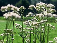 Valerian is a perennial plant with an extremely varied morphology. It comprises a sturdy rhizome with many secondary roots and short runners. In spring the plant develops a basal rosette with pinnate leaves. From around the second year of growth the plant sends up a rotund, furrowed, hollow flowering stem which grows to a height of between 80 and 120 cm and branches out at the top. The lance-like pinnate leaves issue forth from either 9 to 21 finely serrated leaflets, or from a single pinnate. The leaves are pale green on the upper surface and darker underneath; they are attached in pairs to either side of the stem. The stems terminate in umbels bearing many branches and tiny white and pale pink flowers. The fresh plant is odourless. The typical valerian smell can only be detected faintly emanating from the fresh root and its intensity increases only once the plant has been dried. This odour attracts cats and it has a curiously intoxicating effect on them. The flowers are in bloom from May to August. There are 150 species of the genus Valeriana, of which four species are officinal in Europe. The European Pharmacopoeia lists Valeriana officinalis LINNÉ as a collectable species, giving it the additional category of “s.l.” (meaning “sensu latiore”, in the broader sense). In order to prepare the drug, “Valeriana radix”, V. sambucifolia, V. procurrens, V. collina and V. exalta may be harvested [1]. Besides Valeriana officinalis, two other species of this genus are used to prepare herbal remedies: the Mexican species of valerian, V. edulis NUTT. ssp. procera and the valerian indigenous to Pakistan and India, V. wallichii DC. Both species are rich in valepotriates. Unlike V. officinalis, these species are used as daytime sedatives [cf. the Commission E Monograph].