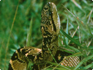 Le lachésis est le plus dangereux des serpents venimeux d'Amérique et, avec une longueur de 170 à 270 cm pouvant même atteindre exceptionnellement 400 cm, c'est aussi le plus grand. Sa tête large et aplatie se détache nettement du cou. L'oeil est remarquablement petit, avec une pupille ronde. Ses crocs particulièrement longs sont des dents tubulaires sur pivot mobile. Quand les mâchoires se referment, les glandes sécrétrices situées sous les yeux sont en même temps pressées par suite de la contraction et se vident de leur contenu par les tubules d'écoulement, le venin pénétrant dans la blessure comme par une injection. Il est intéressant de remarquer que le venin d'un serpent n'est pas toxique pour les autres serpents de la même espèce, en étant toutefois mortel pour ceux d'une autre espèce. Par ailleurs, chaque serpent peut doser la quantité de venin sécrétée. Par son apparence, le lachésis rappelle le serpent à sonnettes. Ses écailles très en relief ont une nervure centrale. Au niveau du tronc, il y en a de 35 à 37 rangées. La queue du lachésis est dépourvue de ce qu'on appelle les sonnettes mais elle porte un dard corné précédé d'écailles redressées. Avec ce dispositif, il produit un sifflement lorsqu'il est en état d'excitation. Le dessus du corps, d'un brun clair jaunâtre ou rougeâtre, se pare de losanges noirs et brillants; entourés d'une ligne jaune pâle, ils ont aussi un point jaune au milieu. Le dessus de la tête est tacheté de noir. Sur les tempes, un trait sombre relie l'oeil à la commissure des lèvres. Le ventre brillant est d'un blanc jaunâtre uni. L'énorme serpent qui vit à même le sol a une activité nocturne; il se nourrit de petits rongeurs. Les femelles pondent des oeufs d'environ 7,5 cm de long qu'elles surveillent jusqu'à leur éclosion. Comme le lachésis est très exigeant en ce qui concerne la température et l'humidité de l'air, il est difficile de le garder en captivité.