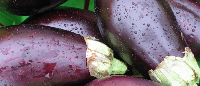 Entourée d’une aura de mystère, l’aubergine (aussi connue sous les appellations poétiques de bélingèle, brinjal, mélongène ou viédase) se distingue par sa vibrante couleur pourpre et sa forme oblongue. Très peu calorique mais regorgeant d’excellents éléments nutritifs, d’une texture spongieuse et d’un goût bien particulier, elle avait jadis la réputation d’être vénéneuse. De fait, elle contient plus de nicotine que n’importe quel autre légume (mais ne vous inquiétez pas : il vous faudrait consommer 30 lb d’aubergine pour ingérer la quantité de nicotine qu’il y a dans une cigarette). Parmi les autres légumes qui contiennent de la nicotine, on peut mentionner la tomate, la pomme de terre, le chou-fleur et le poivron vert, mais il s’agit d’infimes traces.