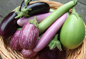 L’aubergine indienne est rouge foncé, de petite taille (à peu près celle d’un œuf) et habituellement cuisinée dans les caris, les soupes et les ragoûts. Petite, mince et plus sucrée, l’aubergine japonaise a la peau d’un violet sombre et sa tige est foncée; elle est souvent marinée ou utilisée dans les tempuras. L’aubergine thaïlandaise est excellente dans les caris; elle est verte, de forme arrondie et beaucoup plus petite que les autres variétés.