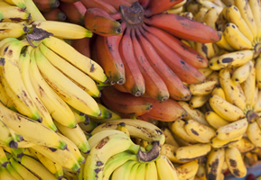 La Pisang Ma, ou « minibanane », est deux fois plus petite qu’une banane ordinaire; son goût est plus sucré et sa peau plus mince. La banane Manzano, aussi appelée « banane-pomme », est une autre variété de petite taille, d’un goût exceptionnellement sucré et à la chair rosée. La Manzano convient particulièrement à la préparation de smoothies, laits frappés et beignets de banane.