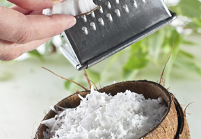 Les noix de coco matures sont à privilégier pour en râper la chair; les petites noix de coco blanches immatures ne se prêtent pas à cet usage. Une fois la noix de coco ouverte, il y a plusieurs façons d’en tirer de beaux filaments ou copeaux.