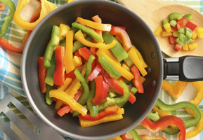Le poivron est excellent dans les sautés, et pas juste parce qu’il apporte une touche de couleur. Pour la cuisson à la poêle, on coupe habituellement le poivron en petits morceaux et on le fait frire à feu moyen-élevé. Faites d’abord chauffer l’huile dans la poêle jusqu’à ce qu’elle grésille, ajoutez les morceaux de poivron, puis faites sauter en remuant constamment pendant environ 5 minutes ou jusqu’à ce que la peau soit croustillante et la chair tendre.