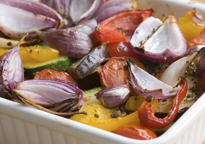 3. Rôtir pendant 30 minutes ou jusqu’à ce que les légumes soient cuits mais encore croquants, en remuant une fois ou deux.