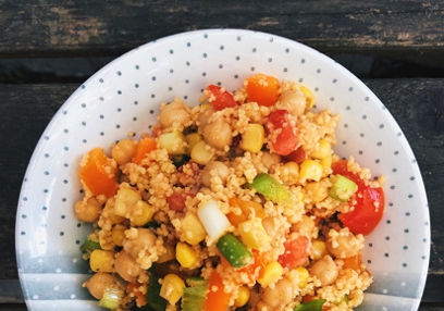 2. Mélanger tous les ingrédients de la salade dans un grand bol avec le couscous cuit et réfrigérer jusqu'au moment de servir.
