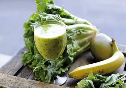 1. Presser l’orange. Peler la mangue et la couper en petits morceaux. À l’aide d’un mélangeur à main ou dans un mélangeur sur socle, réduire la mangue, la banane, la chicorée, le yogourt grec, les feuilles de menthe, le jus d’orange et Molkosan® Petits Fruits en purée lisse afin d’obtenir un smoothie délicieux et rafraîchissant.