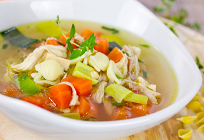 Rien de tel qu’un bouillon de poulet fait maison. Mais... pour préparer un bon bouillon, il faut de la patience. Et quand on a la grippe, on n’a pas vraiment la force de cuisiner. Comment préparer tout de même – en quelques minutes à peine – un bouillon de poulet sain et nourrissant?