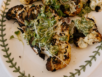 3. Sauce chimichurri : Ajoutez le tout dans un batteur électrique. Mélanger jusqu'à ce que le tout soit bien haché. Servir sur le chou-fleur grillé accompagné de germes.