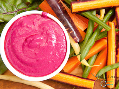 Cette trempette est beaucoup plus facile à digérer que le hummus et comble rapidement les fringales. Les betteraves sont incroyablement énergisantes, alors assurez-vous d'inclure cette trempette rosée à l'heure du lunch ou aux collations lorsque vous avez besoin d'un regain d'énergie!