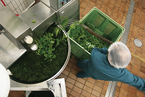 Après la livraison des plantes provenant directement du champ, il faut faire vite : les plantes fraîches doivent être transformées en règle générale dans un délai de 24 heures. Dans de rares cas, il peut être nécessaire d'attendre 48 heures, par exemple lorsque la récolte, provenant de chez les exploitants partenaires, a une longue distance à parcourir. Puis, avant la transformation, de nouveaux contrôles exhaustifs ont lieu.