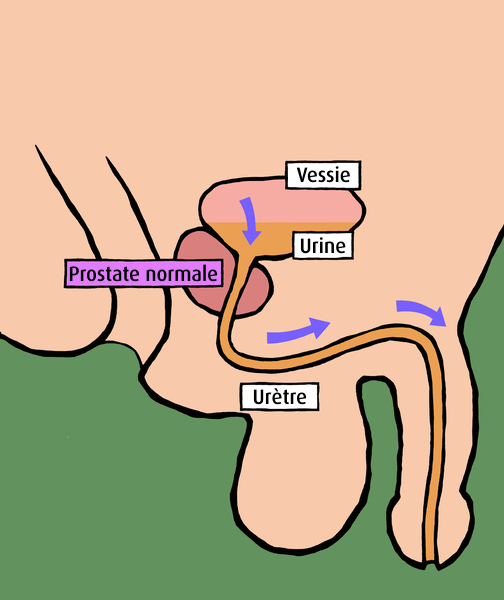 Le grossissement. Lorsque l’homme avance en âge, sa prostate augmente graduellement de volume, ce qui entraîne divers symptômes au niveau de la vessie de même que le trouble couramment appelé grossissement de la prostate, ou hyperplasie bénigne de la prostate (HBP).Pour obtenir de l’information détaillée sur ces différentes conditions, consultez notre page sur les troubles de la prostate.